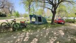 This is a pleasant site, remarkably quiet considering its location, and with a generally bright and cheerful ambience. Extra charge for outfits over 3,5 tonnes and with twin axles. Only gas and electric barbecues. Reservations are not accepted, so in July and August, arrive by late afternoon to avoid disappointment. Some road and rail noise.