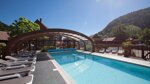 Accessible facilities, Bar with TV room above. Bar and restaurant with canopied terrace (closed Tues and Mon/Wed evenings in low season). Takeaway. Heated swimming pool with Balnéo bench. Spa facility with jacuzzi and saunas. Play equipment. Snooker table. Small football field. Volleyball. Pétanque. Barbecue hire. Visits to Chamois Park and Cheese Farm (July/Aug). Snow shoe expeditions in winter. WiFi (free).