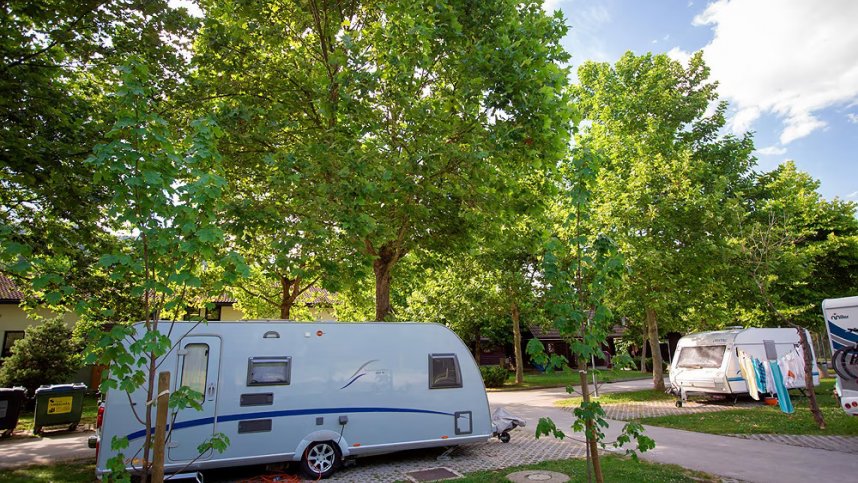 Camping Terme Olimia is an All-Year site near Podčertek, a town in eastern Slovenia situated along the Croatian border. This is a large site with many privately owned cottages and mobile homes. The area surrounding the site is hilly. The site grounds, on the other hand, are flat. The site has 75 grass/hardstanding touring pitches with a 16-amp hook-up point. There are also 28 lodge tents and mobile homes available to hire. The area reserved for touring units is small and part of a holiday park with bungalows and glamping tents. The pitches are arranged in small lanes, and the grounds are well-kept.