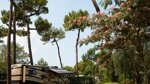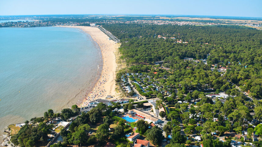 Located in the popular seaside resort of Saint-Georges-de-Didonne, near sunny Royan, Bois Soleil is surrounded by woods and overlooks the sea. It is a large site in three parts, with serviced pitches for touring units and a few for tents. All the touring pitches are hedged and have electricity (10A), with water and drainage between two pitches. The main part, Les Pins, is attractive, with trees and shrubs providing shade. Opposite is La Mer, with direct access to the beach, some areas with less shade and an area for tents. The third part, La Forêt, is for caravan holiday homes.