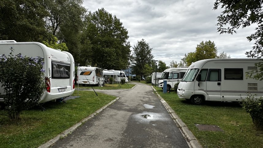 You'll find no noisy entertainment at Camping de Besançon La Plage, so the site is perfect for those looking for peace. This is an urban site and a great overnight stop when travelling down to the South or returning home. That said, children enjoy the sprawling lawns, spacious sports field, large swimming pool and playground. At the same time, the adults appreciate the handy location on the outskirts of Besançon and right beside the River Doubs, overlooked by the wooded hills opposite. There are 97 Pitches of average size, flat and level, and all had some tree shade, 16 amp E.H.U. and ten mobile homes to rent.