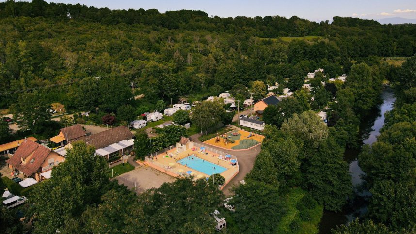 Camping de la Doller is located in Guewenheim, France, near Colmar in the south of Alsace, at the foot of the Vosges mountains and 20 minutes from Mulhouse. It is situated on the banks of the Doller River in a natural setting, offering a peaceful and pleasant environment for a family holiday. This small site has 40 touring pitches with electric hook-up points available. The pitches are not delimited but mature trees provide much-needed shade during the summer months.