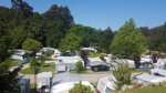 This site, in a peaceful location surrounded by tall trees and impressive towering rock formations, caters for 240 units (of which 100 are seasonal) on slightly sloping ground. There are many marked pitches on different levels, all with access to electricity (6A), but with varying amounts of shade. There are also attractive tent and small camper sections set close in to the rocks and 22 site owned chalets. The site gets very crowded in high season, so it is best to arrive early if you have not booked. The reasonably sized swimming pool and children’s pool have access lifts for disabled campers.