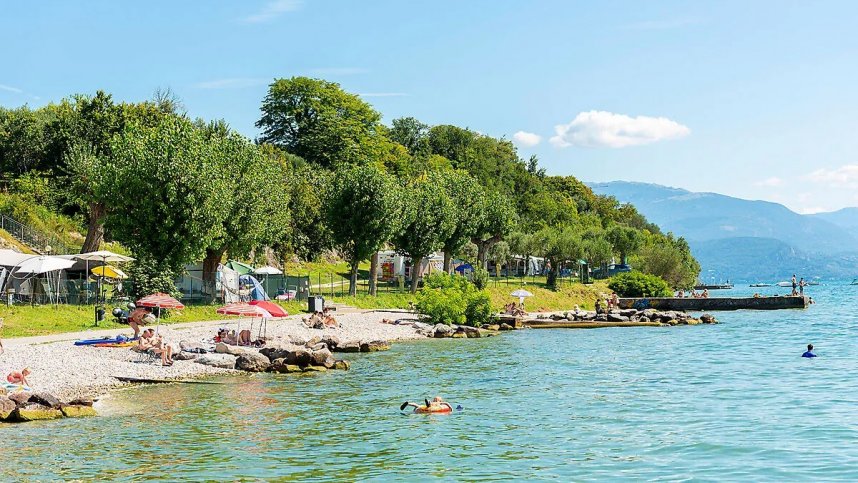 Camping Fontanelle, a member of the HG Hotels group, is situated near the historic village of Moniga and enjoys excellent views across the lake. The site sits on the southwest slopes of Lake Garda and has 166 touring pitches on slightly sloping and terraced ground. Tour operators use a further 50 pitches, but there is minor impingement. All are marked and have 6A electricity connections (36 are fully serviced) and some enjoyable lakeside pitches (at extra cost).