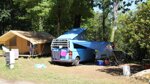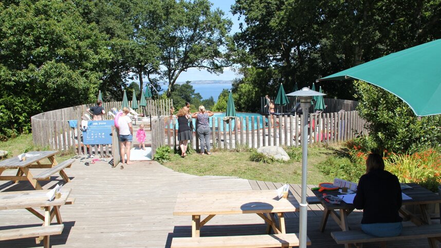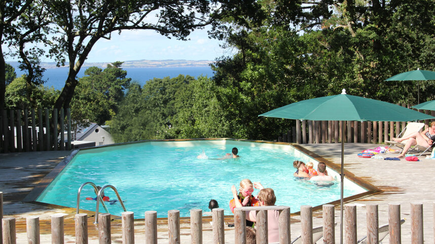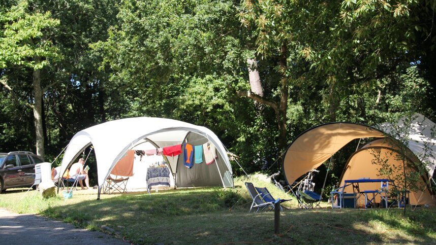 The Huttopia group is renowned for its ‘natural’ campsites. Huttopia Douarnenez has an attractive forest setting just 400 m. from the superb Plage des Sables Blancs. There are 124 pitches here, of which 86 are reserved for touring, some with excellent views across the vast sweep of the Bay of Douarnenez. They are well shaded and grassy, and all have 13A electricity. There are also a number of fully equipped safari-style tents (some with wood burning stoves) for hire as well as a handful of Romany-style caravans. An impressive range of amenities includes a swimming pool and bar/restaurant, and a large safari tent with a wood fire for communal entertainment.