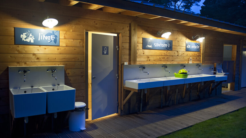 Two modern toilet blocks have hot showers and washbasins in cubicles. Accessible facilities. Washing machines and dryers. Bar, snack bar, takeaway (July/Aug). Outdoor heated swimming pool (all season). Play area. Multisports court. Boules. Activity programme. Bicycle hire, Fully equipped safari-style tents and Romany-style caravans to rent. WiFi (free).