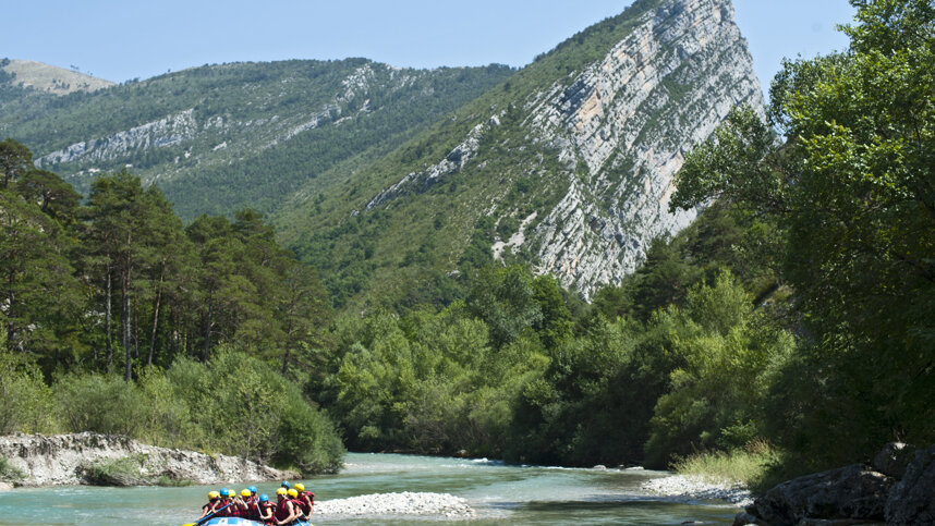 Located at an altitude of 660 metres, between pinewoods and the River Verdon, Huttopia Gorges du Verdon is a family site with 235 large, shaded or semi-shaded pitches and a range of chalets and mobile homes. The site has been entirely renovated. It has an inviting swimming pool and offers direct access to the Verdon (with its own river beach). The main sight here is, of course, the stunning canyon of the Gorges du Verdon, a grandiose area of vertiginous cliffs towering above the emerald river below. There are some superb walks and this is also an ideal location for white-water rafting or canoeing.