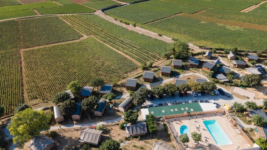Huttopia Meursault offers a perfect escape in the heart of Burgundy. This beautifully situated campsite, just north of the renowned wine town of Meursault, provides the perfect base for exploring the region's rich wine heritage. This recently renovated campsite offers the ideal base for exploring the region's countless wineries, including the iconic Route des Grands Crus between Dijon and Santenay. There are 93 pitches on site, of which 40 are for touring, and 16 amp electric hook-up points are available. Pitches are tightly compacted together during high season, but the best pitches have fantastic views of the surrounding vineyards.