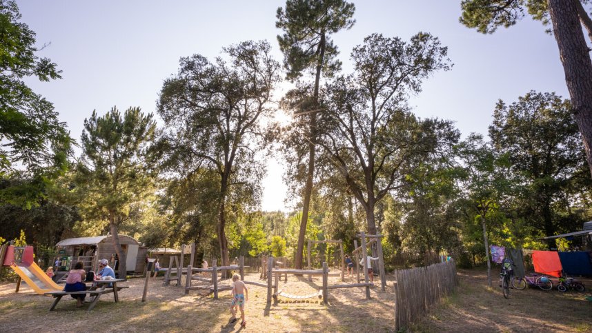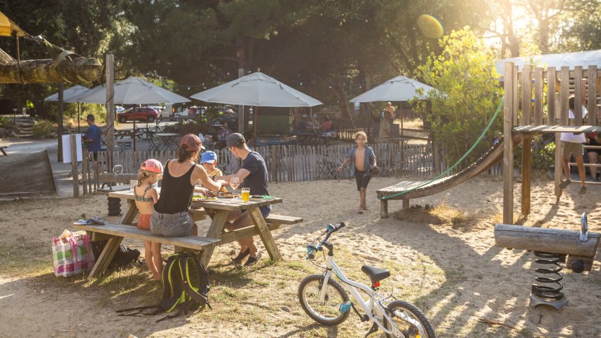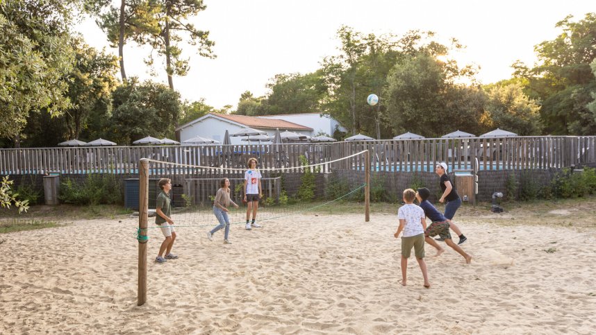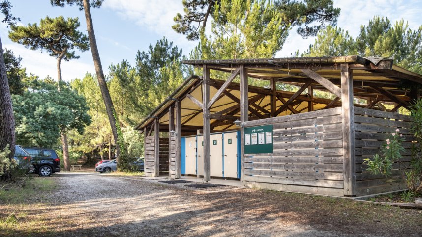 Two very modern toilet blocks provide washbasins in cabins, showers and British style toilets. Ramped accessible facilities. Laundry. Motorhome services. Heated outdoor swimming pool (all season). Small bar, snack bar and takeaway (July/Aug). Bicycle hire. Sandy play area with equipment for young children. Activity and entertainment programme in high season. Only gas or electric barbecues allowed. Free WiFi. Max. 1 dog.