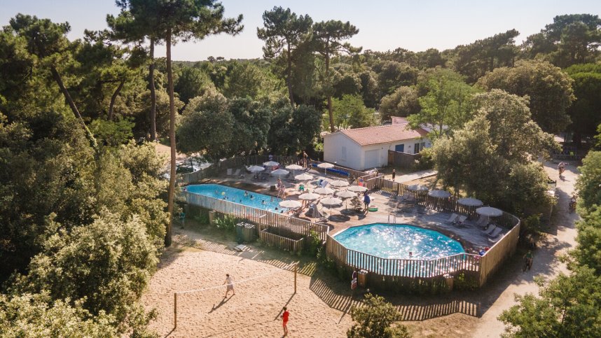 This attractive five hectare site is a member of the Huttopia group. It can be found close to the popular seaside resort of Saint Trojan-les-Bains on the south side of the island. There are 163 pitches (56 for touring), which vary in size, most of which have electrical connections (10A French type). Huttopia Oléron Les Pins is situated in a lightly wooded setting on undulating, sandy terrain, just 1 km. from the nearest sandy beach. A number of specially designed wood and canvas safari-style tents are available for hire; the latest range are equipped with a shower, WC and sink. Large units should telephone ahead to ensure suitable pitch availability.