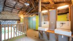 Modern sanitary blocks with Accessible Facilities, baby bathroom, washing machines and dryers. Motorhome services. Small shop, pleasant bar (high season). Small snack bar/takeaway (July/Aug). Outdoor swimming pool, paddling pool. Tennis, football, Stone cottages to rent. Bicycle hire. Free WiFi in reception/bar area. No charcoal barbecues.