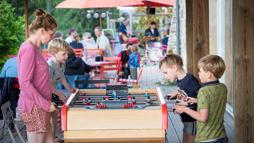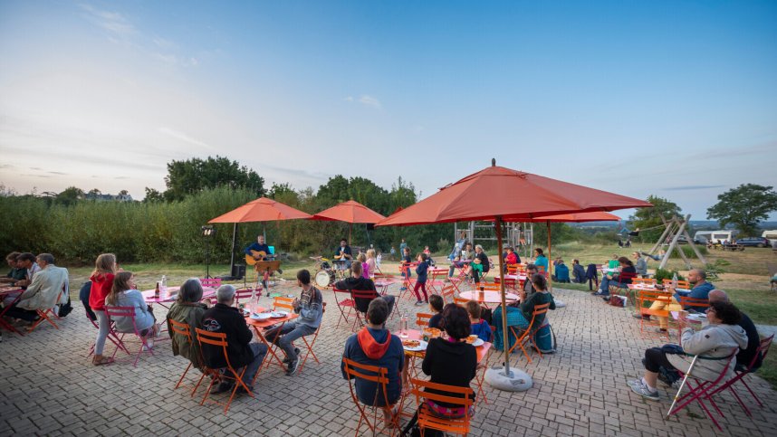 On arriving at Huttopia Saumur with its colourful, floral entrance, a friendly greeting awaits you. The site is set beside a restored farmhouse with beautiful views from one end over the Loire Valley. It is owned by a charitable organisation that provides employment for local people with disabilities. The 120 grass touring pitches are level and spacious, with some new larger ones (100sq.m. at extra cost – state preference when booking). All pitches have electricity 16/A and are separated by low hedges and trees which offer some shade. Water points are easily accessible around the site.