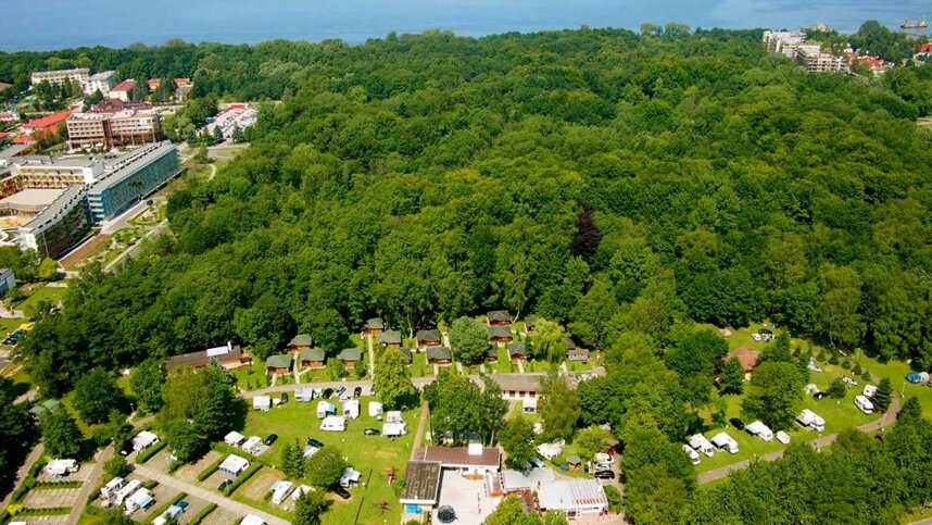 Just four hundred metres from the Baltic Sea in Poland’s biggest spa resort, this four-hectare site is in a forested area with good access to local amenities and attractions. It is a ten minute walk to the historic town centre with its 14th-century cathedral, medieval fuse tower and lighthouse, and boat trips to Bornholm island run in summer. There are 190 pitches, 90 for touring, on grass or hardstanding, and all with 16A electricity. Eighteen fully equipped wooden chalets are available to rent. Kolobrzeg is a popular destination with plenty of culture and entertainment. It is on the European Route of Brick Gothic and on the Baltic Sea cycle route.