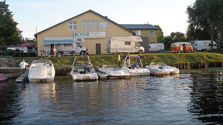 This newly developed site is some 700 m. from the centre of Pärnu, the summer capital of Estonia. There are 50 pitches, all for touring units and with 16A electricity, arranged in two areas on the banks of the River Pärnu, where it is possible to swim. One area, close to the newly built guesthouse (which also houses excellent sanitary facilities, a bar and the reception) provides small, level, grass pitches, some with views over the river. The other area comprising tarmac hardstandings is mainly used for motorhomes. There is little shade on the site and it can be hot in summer.