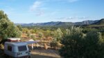 La Fresneda is a great little campsite, situated on three terraces at the foot of a wooded escarpment and overlooking the huge valley of the National Reserve of Los Puertos de Beceite. Everything is in line with the natural beauty of the area and the very clean, very well equipped toilet block is partly underground. There are 24 pitches with grass and gravel surfaces, all used for touring and all with 6A electricity. The site is quite new and the enthusiastic Dutch owners, Jet Knijn and her partner, Joost Leeuwenberg, built it from scratch, recently adding a shady garden atrium with a terrace and plunge pool for guests to relax in and enjoy the views.