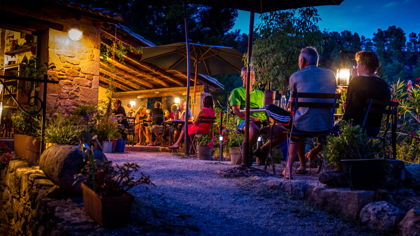 The cosy bar is in rustic style with a terrace to enjoy your afternoon drink whilst enjoying a view of the valley. The adjacent small town of La Fresneda is situated on the top of a hill and is part of the Spanish National Heritage. There are many routes for walking and cycling in the National Reserve Los Puertos de Beceite, as well as directly from the campsite. Not too far away is a ‘Green Track’, an almost flat cycle way which was once a railway. Every guest receives a folder with tourist information about what to do in the area. A small Picasso museum is at Horta de San Joan.