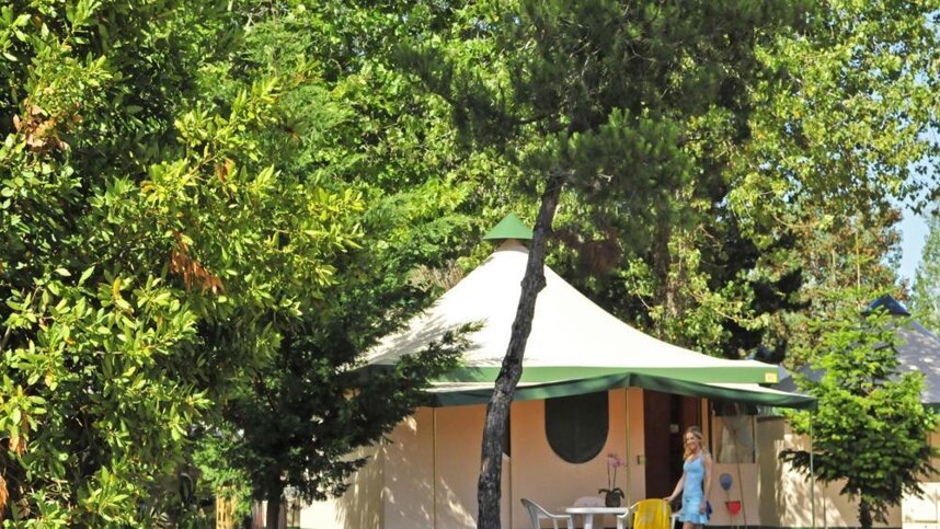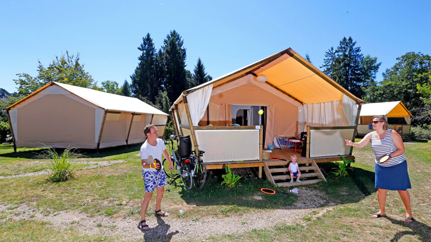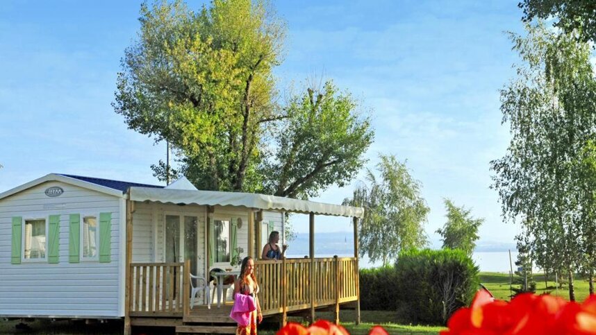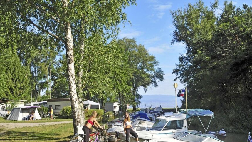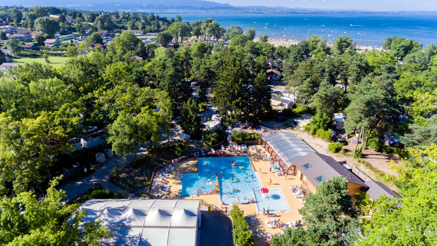 La Pinède has direct access to Excenevex beach, the only naturally sandy beach on Lake Geneva. The site has a pleasant woodland setting and the 357 touring pitches are of a good size, all with 16A electricity. Accommodation for rent includes specially adapted units for wheelchair users. There is a supervised bathing area on the beach, which shelves gradually and a small harbour suitable only for boats with a shallow draught. Other amenities include a shop and takeaway food service, as well as an entertainment marquee, a play area and and outdoor and indoor swimming pool.