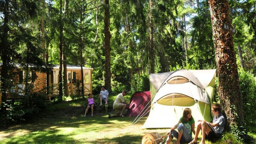 Heated toilet blocks include some private cabins, family shower room and facilities for children and accessible facilities. Washing machine. Motorhome services. Shop with fresh bread (June-Aug). Small heated swimming pool (15/6-10/9). Indoor heated pool (1-5-15/9). Play area. Activities and entertainment programme. Bicycle hire. Lake beach. Fishing. Mobile homes, chalets and equipped tents for rent. Free WiFi over part of site.