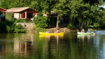 This pleasant site is situated on a gentle hillside overlooking a lake at the edge of the village of Estang, famous for its unique wooden arènes where the traditional ‘courses landaises’ (an ancient form of bullfighting) take place several times a year. There are 104 pitches neatly arranged on terraces. The 50 level touring pitches, a small number of hardstandings, each has an adjacent 6/10A electricity supply (French sockets); the remaining pitches are used for mobile homes and chalets of which 29 are for hire. The touring pitches are mainly grassed and are well separated by hedges and mature trees which provide shade. Some are situated alongside a private lake that is used for fishing and canoeing.