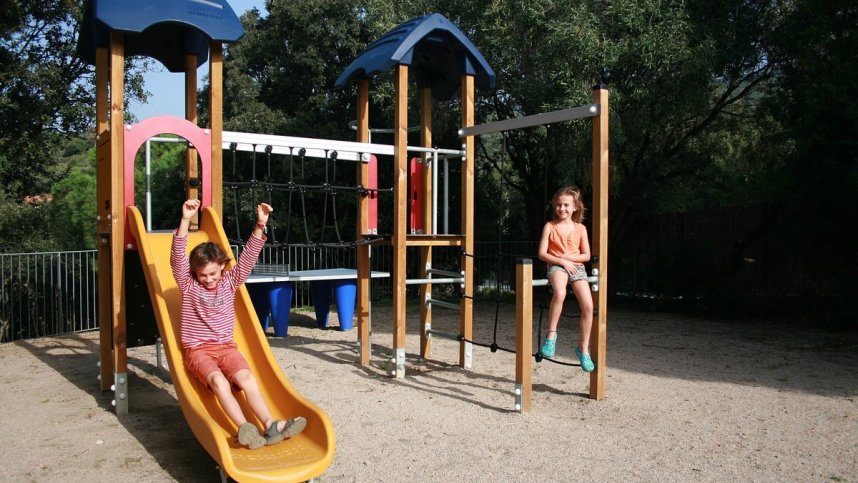 Four toilet blocks have showers, washbasins and wc’s. Accessible facilities. Baby room. Dishwashing area. Laundry. Motorhome service point. Shop. Bread depot. Restaurant. Bar. Pizzeria. Snack bar. Free Wi-Fi zone. Children’s play area. Table tennis. Multi-sports field. Fitness area. 0utdoor heated swimming pool and toddler pool. Indoor swimming pool and supermarket nearby. Dogs allowed.