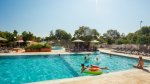 Fully equipped toilet blocks with accessible facilities, baby bath. Washing machines and dryers. There is no shop, but the baker calls every morning June-Sept. Covered snack bar and takeaway. Air-conditioned bar and restaurant. Large heated swimming pool, separate water chute and splendid children’s pool (Seasonal). Multisports court. Gym. TV. Amusement machines. Busy daily activity and entertainment programme in season for children aged 6-12. WiFi over site (Charged). Bicycle hire. Charcoal barbecues are not permitted. Several small communal barbecue areas. Tourist train stops at the site (April-June and Sept).