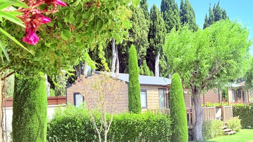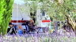 Only a kilometre from the centre of Saint Rémy, in the foothills of the Alpilles mountains, this is one of the most pleasant and well run sites we have come across. Saint Rémy is a very popular town with tourists and the site is frequently fully booked. Everything about it is of a high standard and quality. The good impression created by the reception and shop continues through the rest of the site. In all there are 118 level grass touring pitches with 25 taken by smart mobile homes, with 10A electricity throughout. Flowering shrubs and greenery abounds, roads are tarmac and all is neat and tidy.