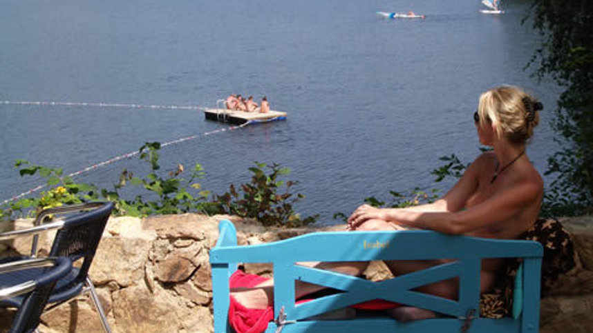 You will receive a warm welcome at Lous Suais, a very attractive 14-acre naturist site beside Lake Maulde. There are 80 spacious pitches (most with 10A electricity) at this wooded, quite steep site, with terraces, steps and winding paths down to the lake which is popular with swimmers. Fishing is also possible and canoes, winsurfing boards and pedaloes are available for use (free to campers in low season).