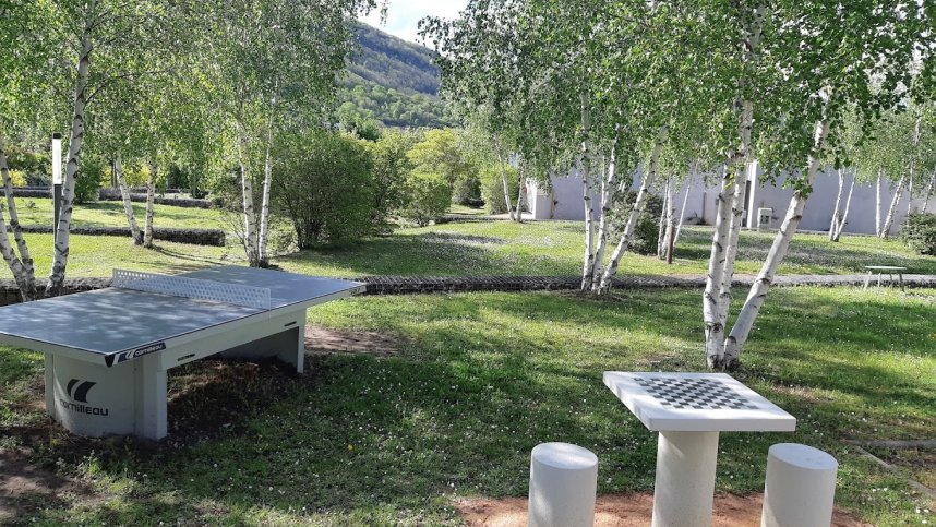 To combat the region's summer heat, Camping Pierre et Sources Only camp introduced a swimming pool in 2024. The outdoor pool offers a refreshing escape after a day of exploring. Beach volleyball, table tennis, and two playgrounds are available for outdoor enthusiasts. When the weather isn't cooperative, the campsite's recreation room provides entertainment with table football, books, and board games.