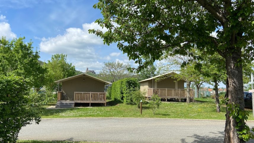 The campsite's 56 touring pitches, each with 16Amp electric hook up points, are strategically located on a sloping terrain transformed into flat terraces. This unique layout offers campers breathtaking views of the surrounding mountains and Tournoël Castle. While the D986 may generate some traffic noise, the pitches on the left side of the site (with the reception behind you) provide a peaceful retreat, ensuring a tranquil camping experience.