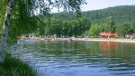 Touring area roads are gravel, main site roads are tarmac and the whole site is on a slight slope. The touring area is served by its own fairly new, timber clad, modern sanitary unit and there is a further older unit close to the motorhome pitches and service point. There is also an open area for ball games. The adjacent sports facilities, lakeside beach and playgrounds are also open to the public but are very comprehensive, and sport orientated activities are organised in July and August. The swimming pool is solely for campers’ use.