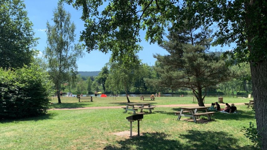 Located at the edge of town beside a small lake in a peaceful position, this site would make a good base from which to explore the area. Ramstein-Plage is a large site with mostly seasonal holiday units and an area for groups. However, it also has a more recently developed touring area of 63 grassy pitches (100 sq.m) 52 with water, drainage and 12A electricity hook-ups. The 305 assorted seasonal units are impossible to ignore and do rather detract from the atmosphere of the site. However, they do have their own three sanitary blocks, and are fairly dormant in low season, outside public holidays or weekends.