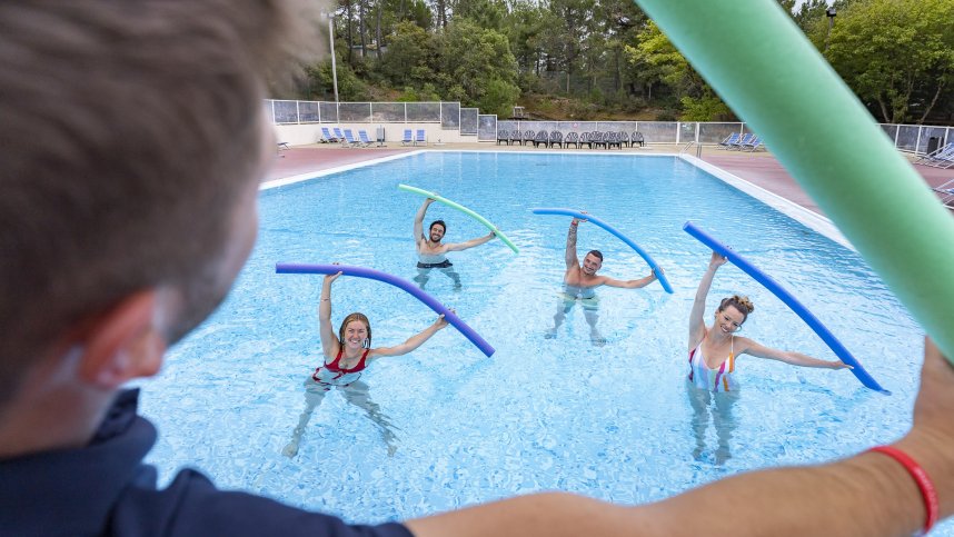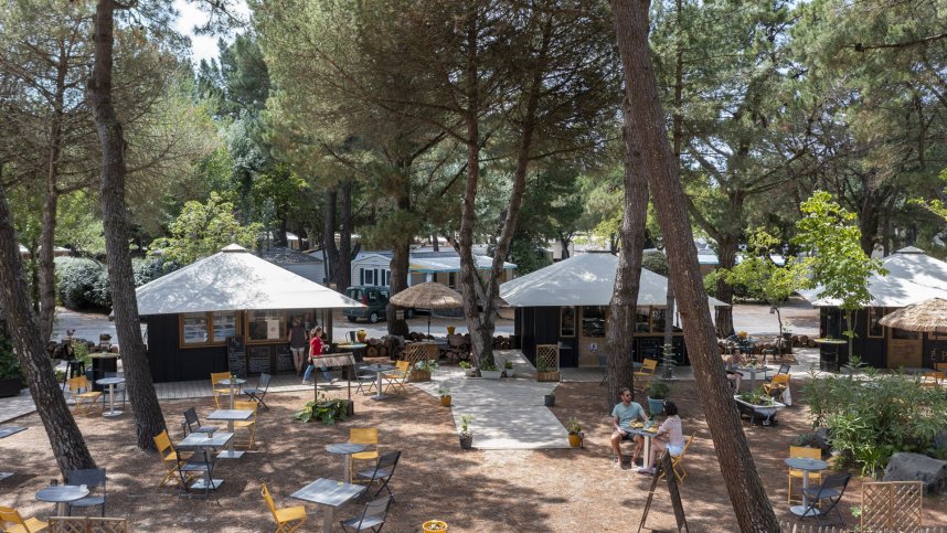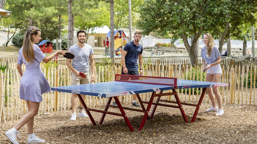 Eight toilet blocks, all of a similar design, include some washbasins in cubicles, seatless toilets, a baby bath, and a good accessible unit. Laundry room. Outdoor heated swimming pools, including one for children (Seasonal). Shop for bread and basics, bar and takeaway (High season). Playgrounds and bouncy castle. Games room. TV room. Entertainment and clubs for children (July/Aug). Multisports court. Boules. Minigolf. Bicycle hire. No charcoal barbecues (Communal areas provided). Supplement for twin-axle caravans. WiFi (Charged).