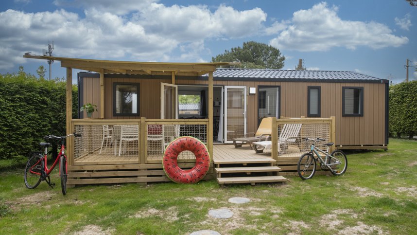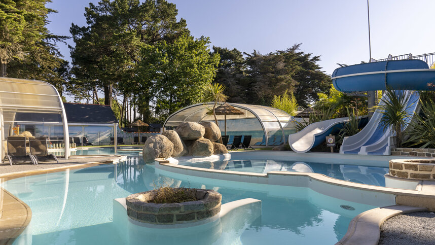 Guests can access a large swimming pool complex with slides and a children's pool. The solar-heated pool with retractable cover is ideal when the weather is cooler at the start and end of the season. You can also use the on-site spa area with sauna and jacuzzi.