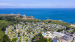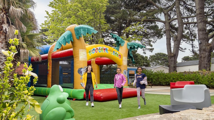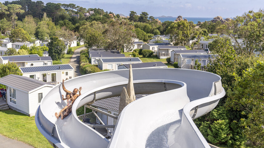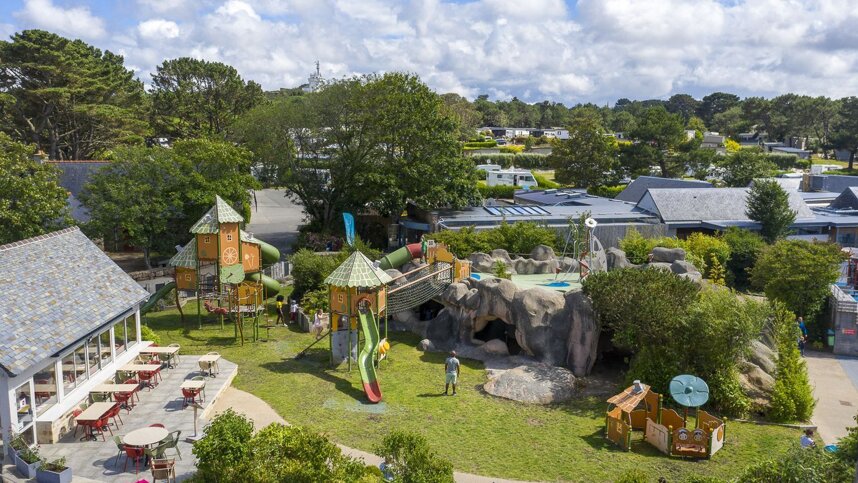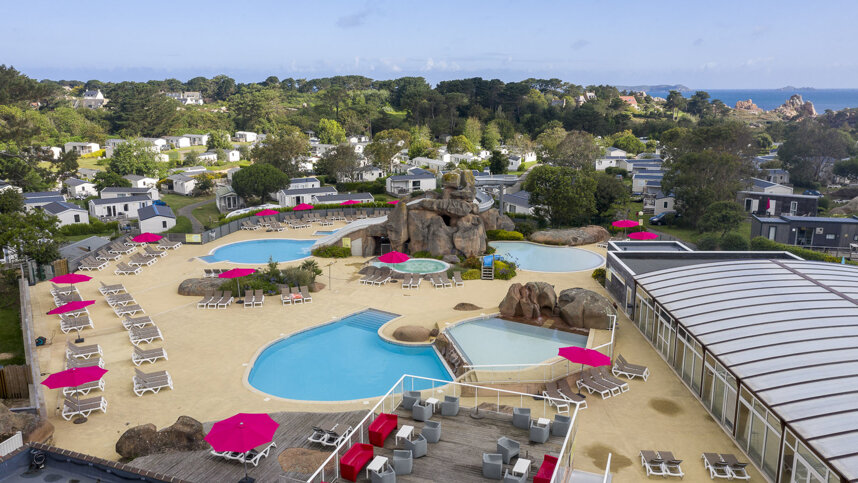Camping Sandaya le Ranolien has been attractively developed around a former Breton farm – everything here is either made from or placed on or around the pink rocks, some of them massive. Of around 500 pitches, approximately 100 are for touring, mostly large and flat, but some quite small, all with 10A electricity, water and drainage.