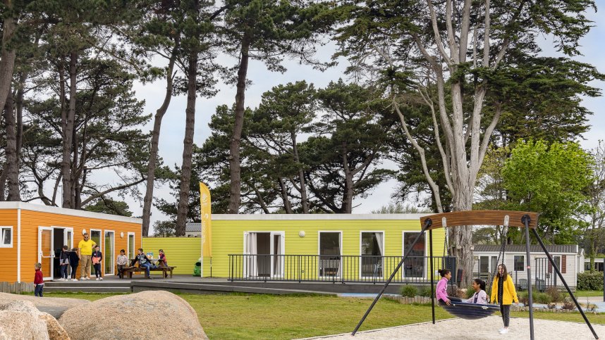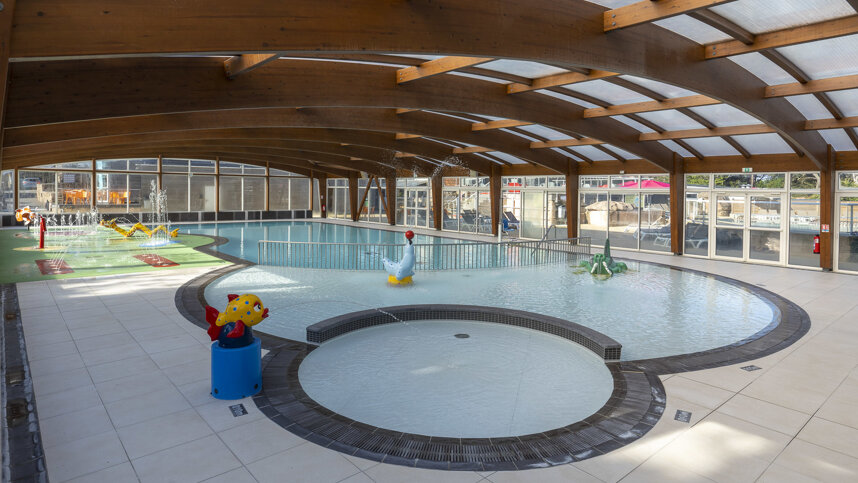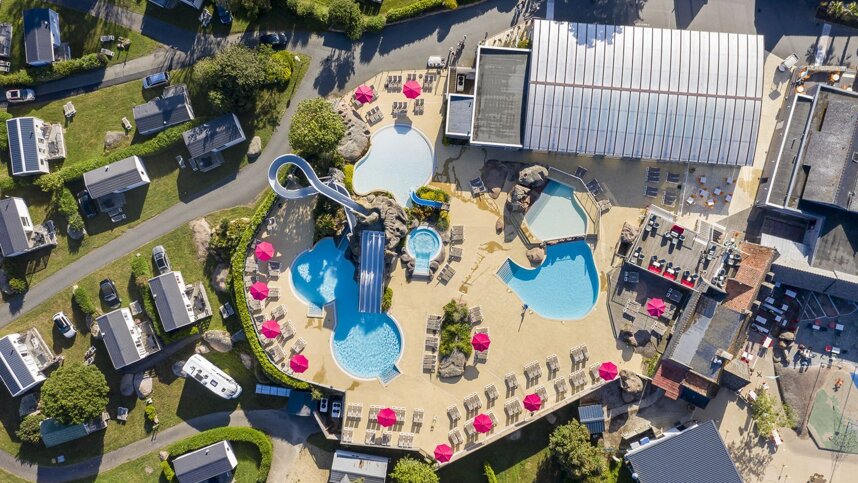 The main toilet block is heated in cool weather and has washbasins in cabins, mostly British style WCs and good showers, some spacious and with washbasins. Accessible facilities. Laundry. Motorhome services. Supermarket and gift shop. Restaurant, crêperie and bar. Indoor (all season) and outdoor (from the end of May) swimming pool complex. Wellness centre. Disco in high season. Minigolf. Games room. Play area. Cinema. Gym and steam room. Mobile homes for hire, including Romany-style caravans and luxury chalets. Internet and WiFi (on payment).