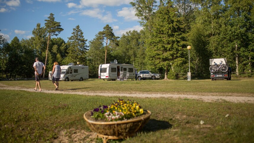 Opened in 2004 and offering first class facilities for touring units, Tehumardi Recreation Centre has good toilet facilities, a sauna, a small rowing pond and an Estonian-style grill house (both inside and with covered terrace) where you can enjoy barbecues. The site has two touring fields, one under mature pine trees, close to reception and the facilities and offering 30 hardstanding pitches with 16A electricity for motorhomes and caravans. The other pitches are on a large, grassy field without shade and this is used mainly for tents. The centre is located at the narrowest part of the largest Estonian Island, Saaremaa, at the start of the Sorve peninsula.