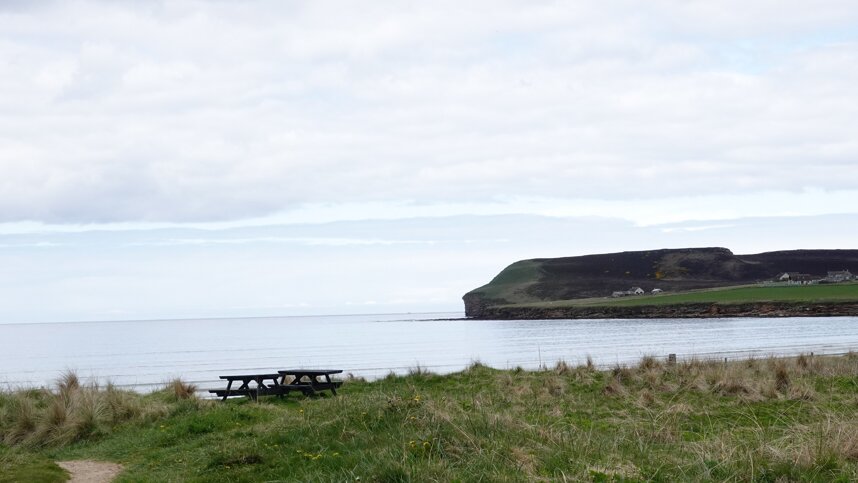 Do not use sat nav. From East (John O'Groats) on A836 the site is on the right about 0.5 mile past Dunnet village. From West (Thurso) on A836: the site is on the left about 2.5 miles past Castletown village.
