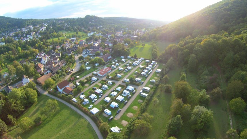 Badenweiler is an attractive spa centre on the edge of the southern Black Forest, and is the site of the largest Roman baths north of the Alps. It is easily accessed from the A5 or B3, but far enough from them to be peaceful. This well kept, family run campsite with outstanding open views is on a hillside close to Badenweiler and the spa facilities. There are four terraces with 100 wide, individual grass pitches, 96 for touring, all with electricity (16A), water and drainage. The main building houses reception, a small shop and a bar/café which serves takeaway snacks in high season. Downstairs are further toilets and a well equipped playroom.