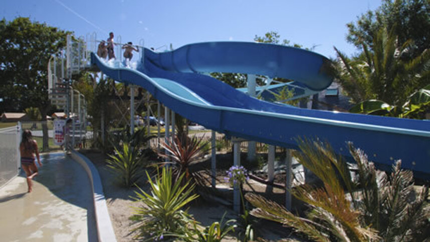 Le Cabellou Plage is a very pleasant, well-maintained site located close to Concarneau. The large, grassy pitches are divided by young hedges, all have 10A electricity and water nearby. Long extension cables may be required on some pitches. The enthusiastic owner has tastefully landscaped many areas of the site with a profusion of shrubs and flowers. A large swimming pool on site is overlooked by a terrace and bar, and the beach is just 25 m. away. An indoor swimming pool was added to the waterpark in 2020. The wide and attractive bay is ideal for canoeing and canoes are available for hire from the site. The area for mobile homes is most attractive and cars are parked in an adjacent parking area or directly on the pitches.