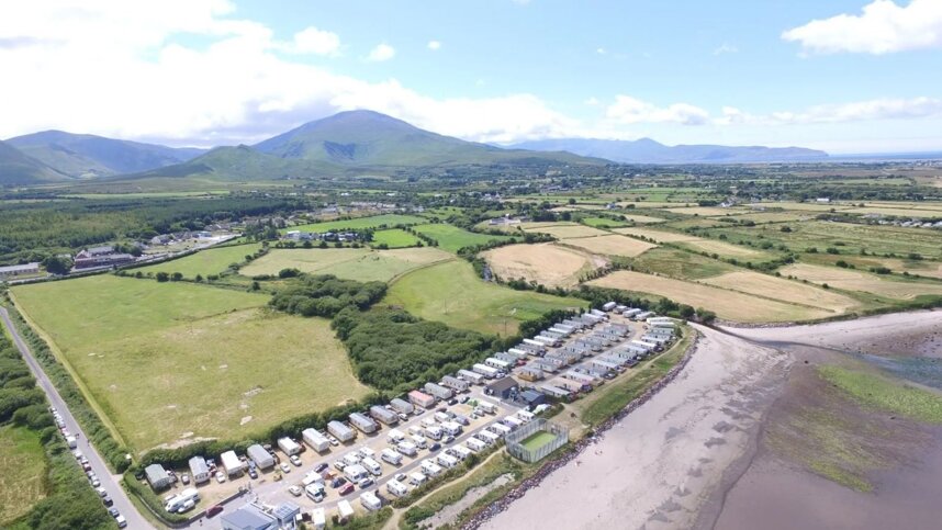 From Cork take N22 to Tralee, N86 to Dingle (14 km), then R560 towards Castlegregory for 5.5 km. Site is on right before village and well signed.