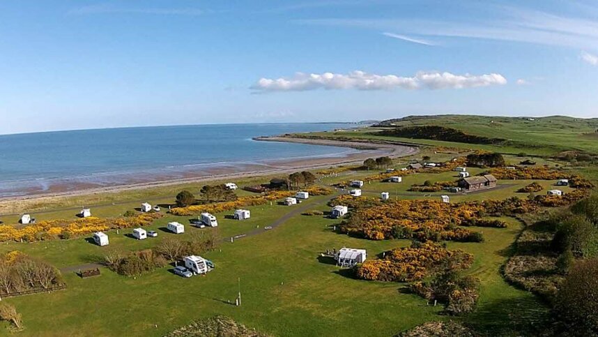 This is a Caravan and Motorhome Club site on the shore of Luce Bay. It is carefully landscaped into seven pitching areas, each with a different character and lovely sea views. It has direct access to a clean and sandy beach which is ideal for swimming, sailing, water sports and sea angling. The peaceful and picturesque location also provides an ideal base for exploring the machars and Rhins of Galloway, one of the unspoilt corners of Scotland. The area surrounding New England Bay has a wealth of wild flowers and bird life, the Galloway Coastal Path follows the site boundary on the beach side and the quiet lanes are ideal for cycling and running.