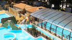 Modern toilet block with all necessary facilities. Washing machine/dryer. Shop. Bar and takeaway with adjacent large open air amphitheatre and stage. Outdoor and indoor pools, water slide and flume. Play area. Children’s and teenager’s clubs. Discos. Tennis. Minigolf. Volleyball. Boules. Multisports area. Bicycle hire. Barbecues must be hired from site. WiFi on part of site (charged).