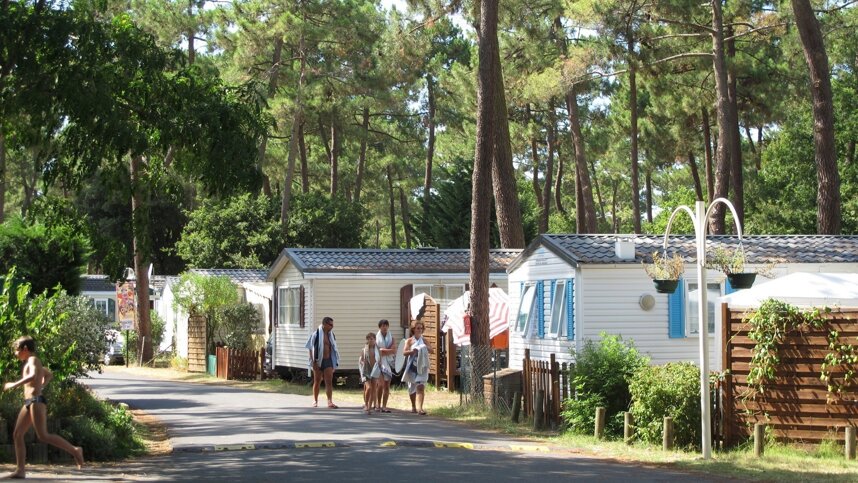 Camping Palmyre Loisirs is a very large and lively campsite lying on a peninsula 16 km. north west of Royan and only a 10 minute drive from several long sandy beaches. The site is surrounded by a pine forest and has over 600 pitches laid out in sandy, grassy, woodland areas. There are just 22 fairly small pitches for touring, all with 6A electricity (2-pin French style). These are a long walk from activities and pools. The campsite is very popular with families who enjoy plenty of entertainment (July and August) when there is a varied programme of day long activities for all ages including the very popular circus school. The site is not suitable for large units.