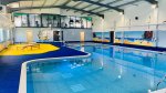 Three heated toilet blocks (key entry) only one of which has showers. At busy times these could be stretched, although it was clean at the time of our visit. Accessible sanitary facilities. Laundry. Well stocked shop. Large bar with TV. Café. Indoor swimming pool (booking system). Games room. Pool room. Large amusement arcade. Play area. River fishing (with licence). Family club in high season with games, fancy dress, discos etc. Dog walking area. Bus route. WiFi in café.