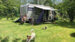 The owners, Magali and Bruno, are keen to attract more British and Dutch visitors and are working hard to make improvements to their site. There are about 100 level, grassy pitches, around 70 for touring and tents, 55 with 10A electricity. The remainder are used for the mobile homes (available all year) and four canvas bungalows.