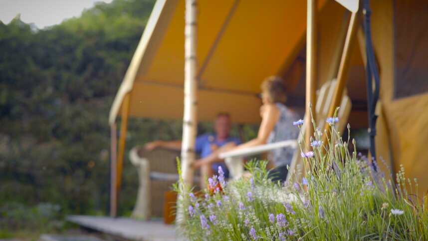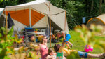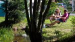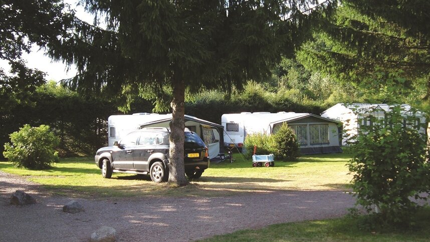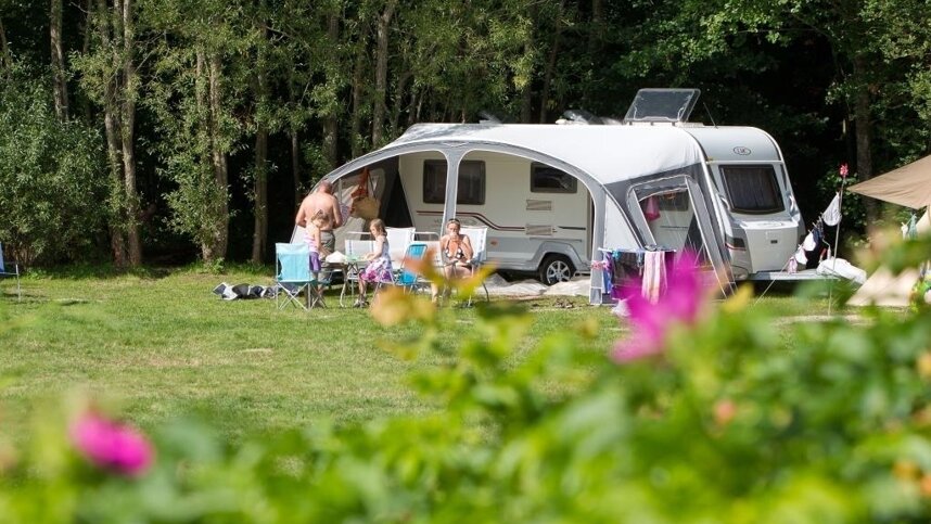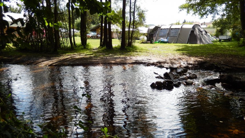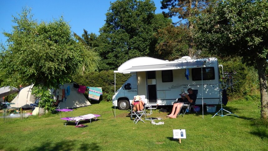 Sites et Paysages Camping Au Clos de la Chaume is a pleasant site within walking distance of the town, on level ground with a small stream. The friendly family owners, who are British and French, live on-site and do their best to ensure campers have an enjoyable, relaxing stay. The grassy pitches are level, of varying sizes and with varying amounts of sun and shade. All touring pitches have electricity hook-ups (6/10A), and some are divided by shrubs and trees.
