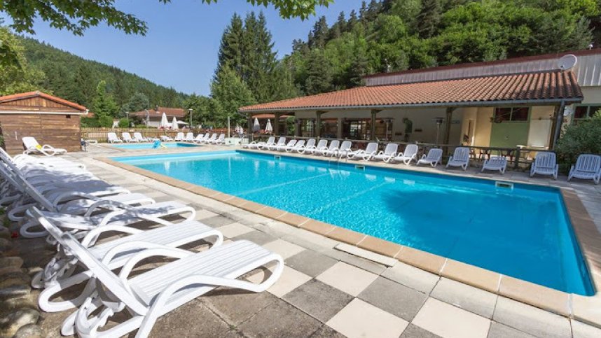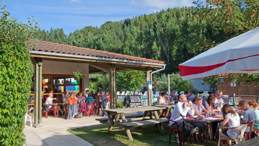 Very good, clean toilet blocks include a baby room. There are two family bathrooms that double as accessible facilities. Washing machine, dryer. Small shop, bread. Bar, restaurant and takeaway (mid-May - mid-Sept). Attractive swimming pool, children’s pool. Separate solarium. Boules. Extensive riverside grass games area. Playground. Activities in season include campfire, music evenings, and children’s canoe lessons. Kids club, Trout fishing. Birdwatching. WiFi (free).