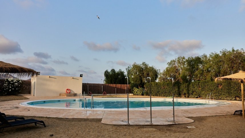 The oval, tiled pool is in an attractive setting with sunbathing lawns. Close by a large building operating as a bar/restaurant in July/August and as an activity centre during the winter months to possibly include whist, line dancing, socials, painting and crafts. The nearby towns of Garrucha, Vera and Villaricos all have good street markets on Fridays, Saturdays and Sundays, respectively. The hilltop town of Mojacar dates back to 2000 BC. (good views) is geared toward the tourist.