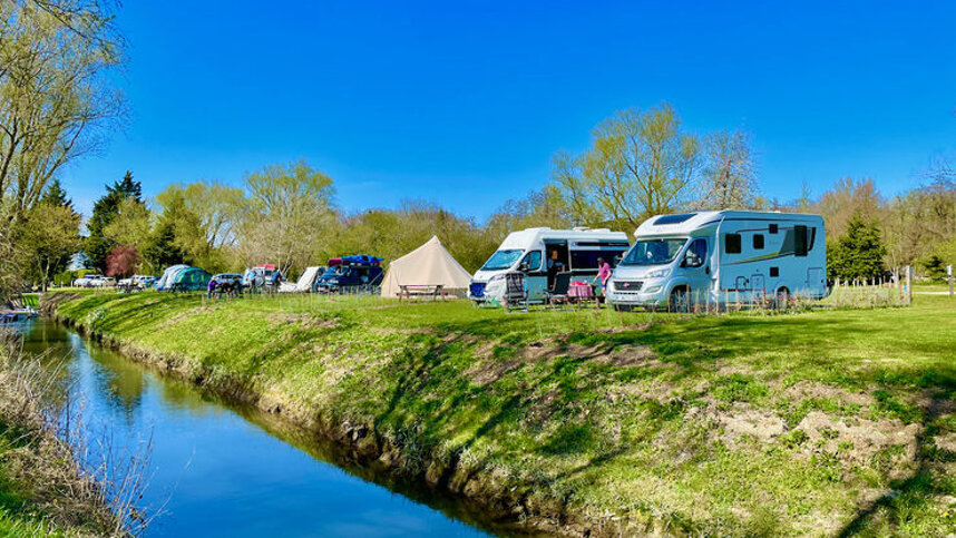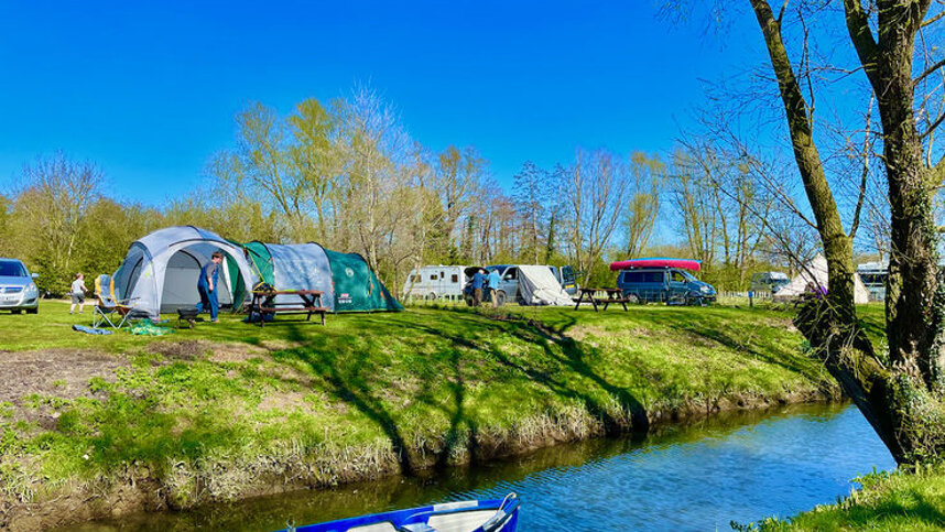 The site has 17 touring pitches with electric hooks-ups available and a further 7 with hook-up points, as 3 of the electric waterfront pitches can be shared by a group of two units who would like to pitch together (unit size dependent). There are nine electric water front pitches situated along the private dyke, all with at least 11m of water frontage, where you can watch the paddlers float by.
