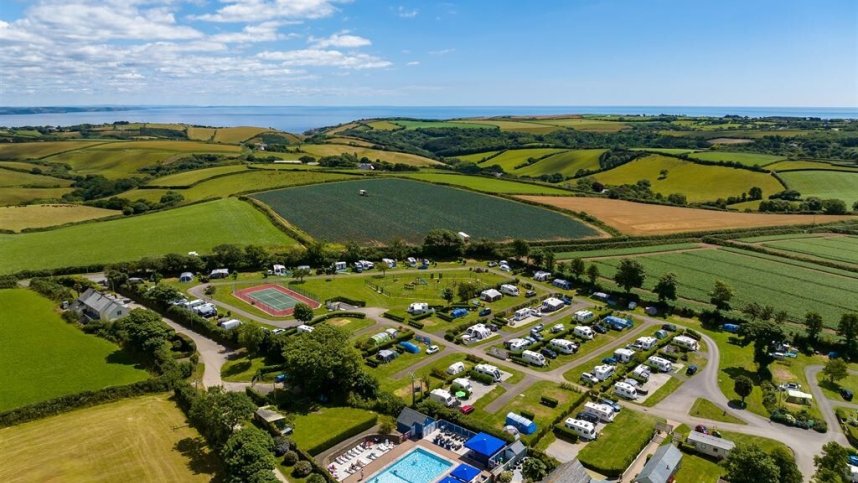 Run by the welcoming Hicks family, the Tregarton Park estate itself dates back to the 16th century. The family have worked hard with their conversions to create a pleasing environment. The 12-acre caravan park is made up of four meadows with wonderful rural views. The 125 pitches, all with 10A electric hook ups, 30 with hardstanding, are of a generous size with most separated by either hedges or fencing. All have been terraced as the park itself is quite hilly. Reception provides a well stocked shop, tourist information and a takeaway service in high season, offering freshly cooked food including a daily delivery of Cornish pasties.
